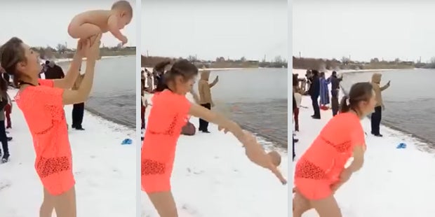 Bei Babys ist die Nackenmuskulatur nur schwach ausgebildet und sie haben kaum Kontrolle über den Kopf. Ein zusätzlicher Schwachpunkt ist das ungleiche Größenverhältnis zwischen Kopf und dem restlichen Körper. Auch die sogenannte Markscheide, welche die Nerven schützend umhüllt, ist noch nicht vollkommen ausgebildet, weshalb das Gehirn besonders verletzbar ist. Bereits ein Schütteln von Babys und Kleinkindern kann daher für sie lebensbedrohlich sein. Mit diesem Wissen lässt sich das Handeln der russischen Mutter im Video nur schwer nachvollziehen. Auf dem besagten Youtube-Video schleudert sie ihr Kleines regelrecht durch die Luft und hält es dabei an seinen dünnen Ärmchen fest. Anschließend wirft sie es kopfüber nach oben und fängt es danach. Dabei befindet sich die Mama an einem See, der von Schnee umgeben ist. Das Baby ist dabei vollkommen nackt und ungeschützt. Anschließend nimmt die Mutter auch noch das Baby mit ins eiskalte Wasser. Schließlich gehört Eisbaden in Russland zur Tradition. So wird etwa das Dreikönigsfest dort mit einem Eisbad gefeiert, um sich von den Sünden zu befreien. Dieses soll die Gesundheit stärken und die Seele reinigen. Aus welchem Grund diese Mutter jedoch ihr Baby durch die Luft wirft und es anschließend ins klirrend kalte Wasser steckt, ist nicht bekannt. Wir können darüber nur den Kopf schütteln.