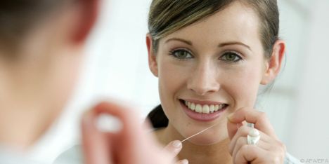 Die Zahnzwischenräume sollten mindestens dreimal pro Woche abends vor dem Zähneputzen mit Zahnseide gereinigt werden. Denn Karies entstehe bevorzugt zwischen den Zähnen.
