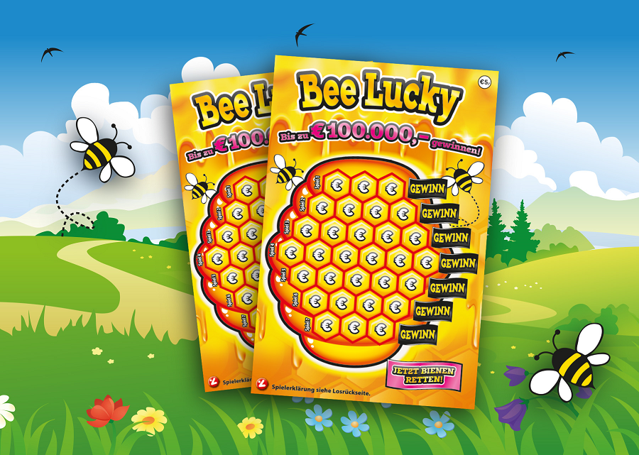 Das neue Rubbellos „Bee Lucky“ bietet gleich sieben Spiele. Findet man pro Spiel dreimal das Bienen-Symbolen, hat man den jeweils ausgewiesenen Betrag, und das sind immerhin bis zu 100.000 Euro, gewonnen. Pro Los kann man bis zu dreimal gewinnen.