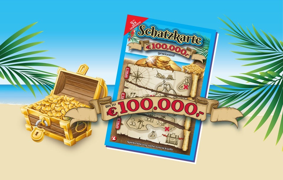Mit dem neuen Rubbellos „Schatzkarte“ geht es auf einem Los gleich dreimal um Gewinne bis zu 100.000 Euro.