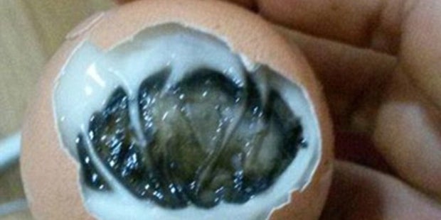Nachdem er das Ei gekocht hatte, entdeckte der Mann die Überreste des Kükens.