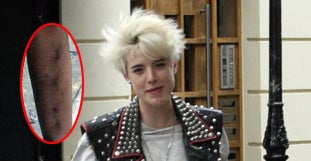 Aua! -Mit einem von blauen Flecken übersätem Bein, zeigte sich das Model jetzt in London.