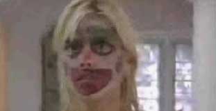 Sie ist eindeutig nicht mehr Herrin ihrer Sinne. Als Clown verkleidet spielt