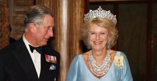 Diese war auch gleichzeitig Gegenstand des Getuschels. Denn die Krone, die sie an diesem Abend trug, war jene der im März 2002 verstorben Queen Mum (†101). Diese Diamond Honeycomb Tiara trug sie zum ersten Mal 1947, ließ sich von der Edelschmiede Cartier 1953 einige große Diamanten zusätzlich einsetzen. Insider schätzen den Wert der Krone auf rund 1,5 Millionen Euro. Bereits im März 2006 „krönte“ sich Camilla mit dem Geschmeide bei einem königlichen Auftritt.
