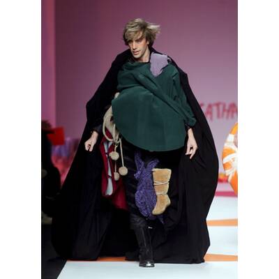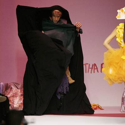 In ein schwarzes Leintuch gehüllt stürmte "Borat" den Catwalk während einer Modeschau in Mailand.