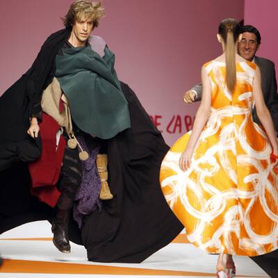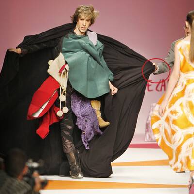 Während die Models unbeeindruckt weitergingen, schritt ein Sicherheitsmann ein.