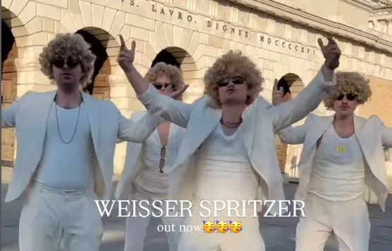 Sein zweites Lied trägt den Titel „Weißer Spritzer“ und ist, wie Bohl selbst sagt, „eine Hymne der Hochkultur, die den österreichweiten, sommerlichen Spritzwein-Genuss würdigt“. Passend dazu hat der Kabarettist auch gleich ein Musikvideo gedreht: Im weißen Anzug cruist er mit einem roten Golf-Cabriolet und – selbstverständlich – einem Glas Spritzer vom Wiener Kult-Café Sperl durch die Stadt. Auch der legendäre „Spritzweinkönig“ und Bürgermeister Wiens Michael Häupl ist in gewisser Weise mit von der Partie.