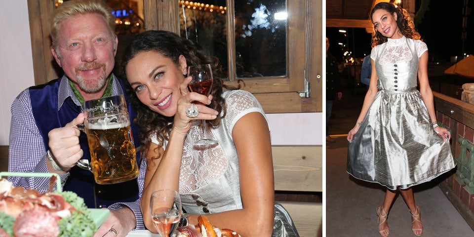 Dieses Jahr strahlte die Ehefrau von Tennis-Legende Boris Becker in einem silberfarbigen Dirndl mit sexy Spitzeneinsatz am Ausschnitt. Dass es sich um eine edle Kreation handelt, sieht man schon am Stoff: Feinste Seide wurde für das Mieder und die Schurze gewählt, die Knöpfe sind aus Mondstein, in Silber gefasst. Ein paar echte Diamanten blitzen auch hervor, wow!