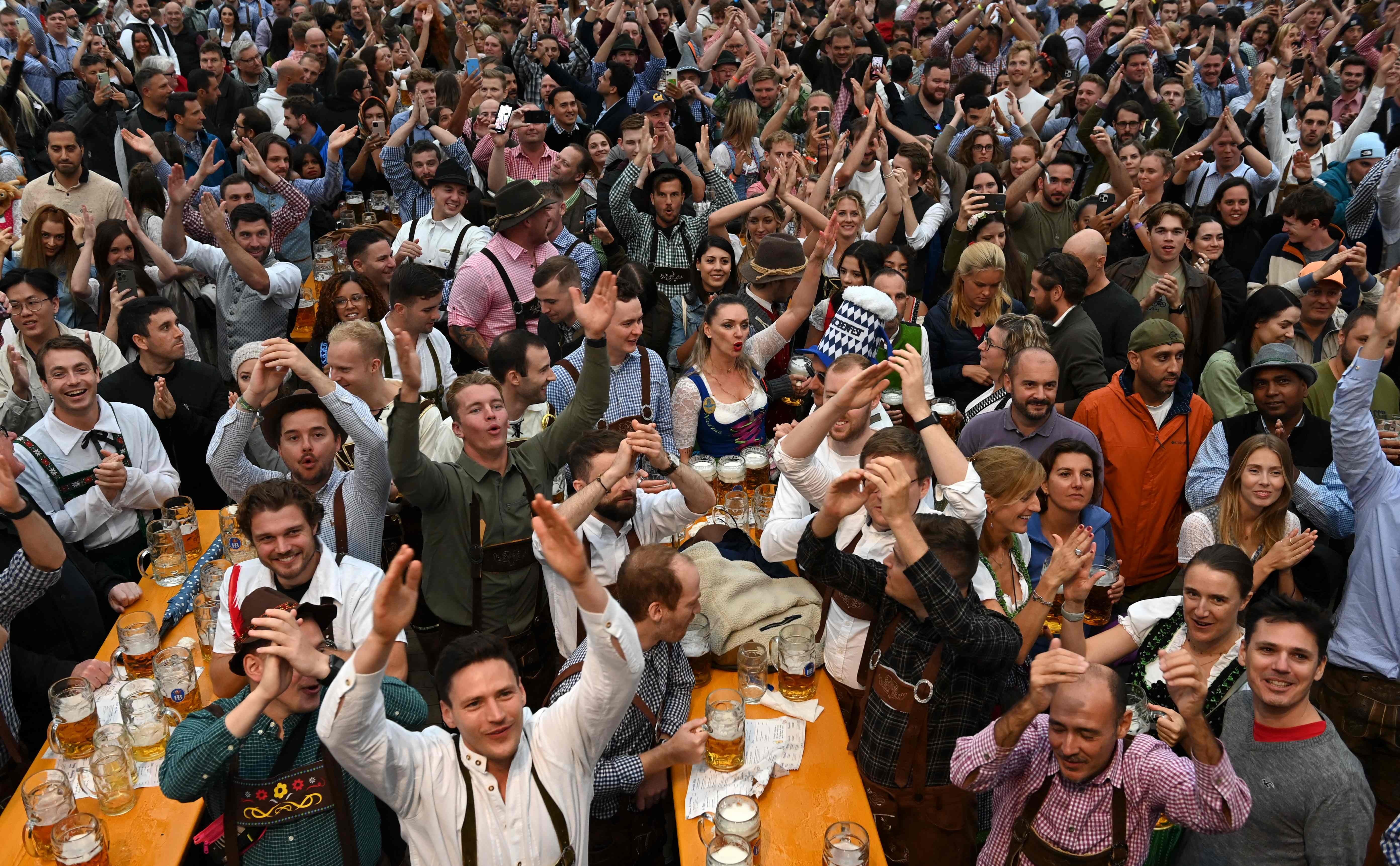 Schon im Morgengrauen hatten Tausende Besucher in der Kälte und im Nieselregen vor der Festwiese ausgeharrt und "vorgeglüht". Als das Gelände öffnete, stürmten die Massen in Richtung Bierzelte. "Es ist das Feeling wie früher", sagte Helga Geier, die gebrannte Mandeln verkauft. Auch wenn ohne Auflagen gefeiert werden kann - die Corona-Gefahr ist nicht gebannt. Die Behörden mahnten Besucher, bei Erkältungssymptomen einen Test zu machen und zum Schutz anderer nicht krank zum Fest zu kommen. Mediziner rechnen nach der Wiesn - wie nach anderen Volksfesten - mit einer Corona-Welle.