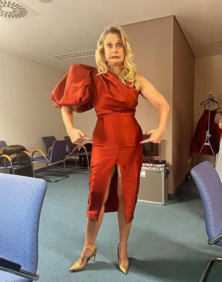 Von dem Riss war also nichts mehr zu sehen. Das wunderschöne Satin-Kleid stammt übrigens von einer österreichischen Designerin. Carolin Sinemus ist mit ihrer Marke MADL Salzburg dafür verantwortlich gewesen. Für das Malheur konnte diese natürlich nichts. Dafür rettete sie die Moderatorin in ihrer misslichen Lage.