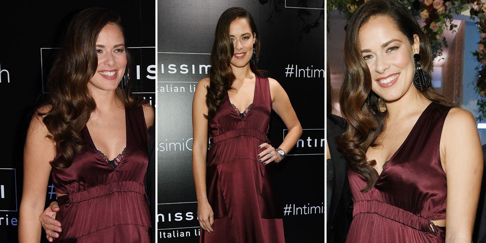 Eine offizielle Bestätigung gab es bisher nicht. Doch nun war es endlich soweit und Ana zeigte eine zarte Wölbung. Zur Eröffnung des Intimissimi-Flagship-Stores in New York zeigte Ana sich in einem beerenfarbigen Seidenkleid mit schönem Spitzen-BH drunter, der hervorblitze. Dazu trug sie zarte Sandaletten und schicke Retro-Haarwellen.