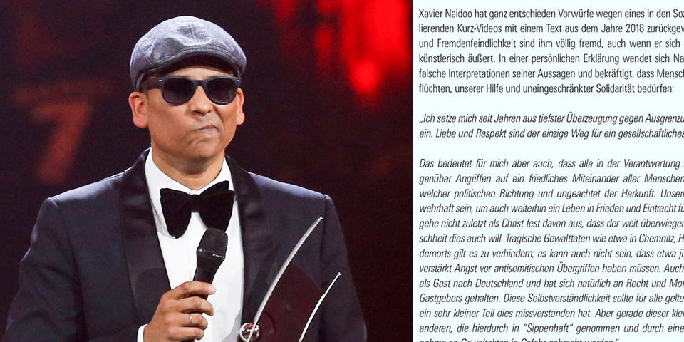 Naidoo schrieb, seine Aussagen seien absolut falsch interpretiert worden. Zu den Hintergründen und der Entstehung des Videos äußerte er sich aber nicht. Dennoch kostete es ihn einen aktuellen Job. Rassenhass und Fremdenfeindlichkeit seien ihm völlig fremd, auch wenn er sich zuweilen emotional künstlerisch äußere, hieß es zuvor in einem Beitrag auf Naidoos Facebook-Seite vom Mittwoch. "Ich setze mich seit Jahren aus tiefster Überzeugung gegen Ausgrenzung und Rassenhass ein. Liebe und Respekt sind der einzige Weg für ein gesellschaftliches Miteinander", wurde der Sänger dort zitiert.