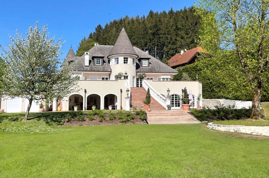 "Dieses exklusive Anwesen thront in einer sonnigen Lage mit atemberaubendem Blick auf die Berge, am nördlichen Rand der malerischen Stadt Salzburg auf einem gepflegten, 2.625 m² großen Grundstück", schreibt die Immobilienfirma dazu.