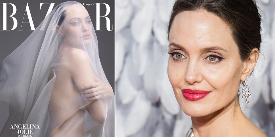 Schauspielerin Angelina Jolie überrascht unbekleidet am Cover von "Harper's Bazaar".