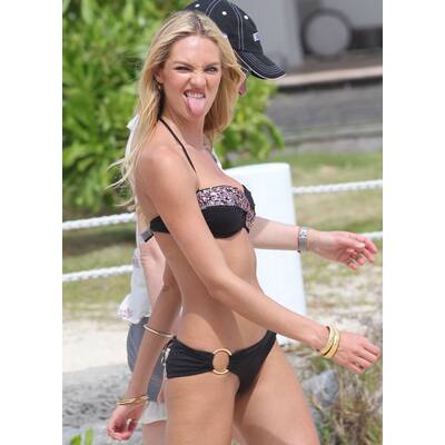 Was für ein Anblick! Supermodel Candice Swanepoel im knappen Bikini, hinter ihr der Strand, die Hügel: Die Südafrikanerin ist Stammgast in Brasilien, seit sie mit dem Model Hermann Nicoli (er stammt aus dem Südosten des Landes) liiert ist. Klar, dass sie sich die Fußball-WM nicht entgehen lässt.