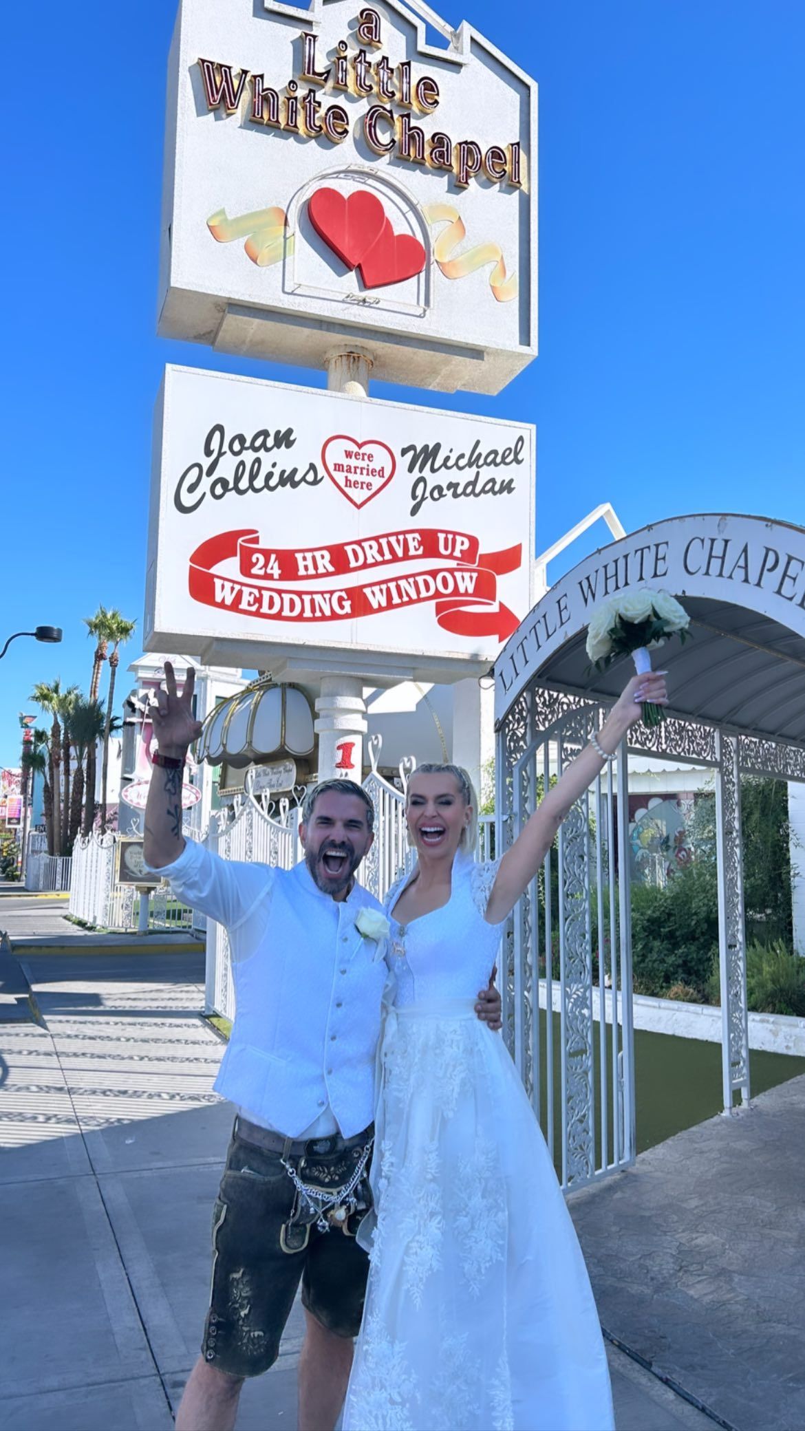 Via Instagram verkündeten Marc Terenzi (45) und Verena Kerth (42) ihre heimliche Hochzeit. Im Weißen Dirndl und Lederhose posiert das Paar vor der legendären "Little White Chapel" in Las Vegas. Dabei hält Kerth einen weißen Rosenstrauß in der Hand und jubelt.