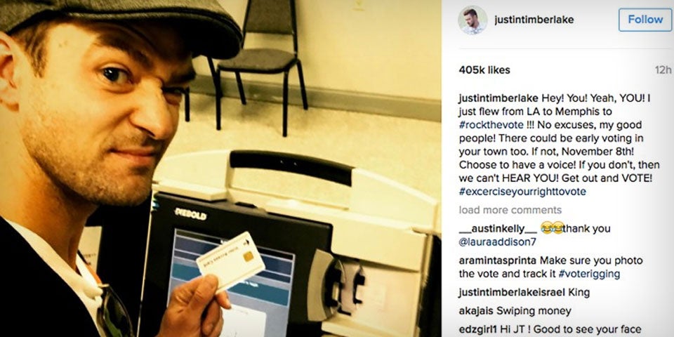 Damit hat Justin Timberlake wirklich nicht gerechnet. Der US-Star reiste eigens von Los Angeles nach Memphis, um seine Stimme für die Präsidentschaftswahl abzugeben und verband das gleich mit einem Aufruf an seine Fans: "Keine Entschuldigungen, meine guten Leute! In eurer Stadt könnte es auch die frühe Wahl geben. Wenn nicht, dann am 8. November! Entscheide dich, eine Stimme zu haben. Wenn nicht, dann können wir dich nicht hören. Geh raus und WÄHLE!", forderte er seine Follower auf Instagram auf, von ihrem Wahlrecht Gebrauch zu machen.