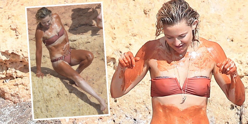 Das ist gut für die Haut! Beim Baden auf Formentera schmierte Kate Hudson sich ordentlich mit rotem Sand ein.