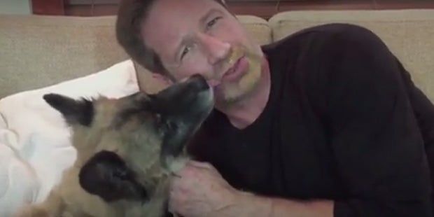 Allen voran David Duchovny mit seinem Rettungshund Brick. Der Akte-X-Star zeigt in einem Youtube-Video, wie er sich mit Erdnussbutter beschmiert - Brick schleckt ihm diese brav vom Mund.