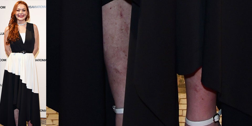 Lindsay Lohan auf Fashionparty - mit völlig zerschundenen Beinen.