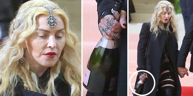 Was für ein Abgang: Madonna verließ den Met Ball an der Hand von Givenchy-Chef Ricardo Tisci und mit Champagner-Flasche.