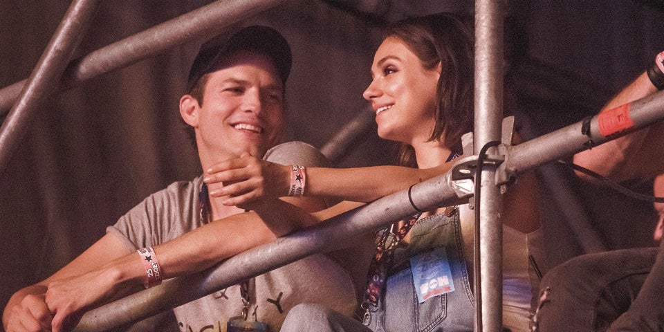 Mit Ehemann Ashton Kutcher turtelnd in der Innenstadt.