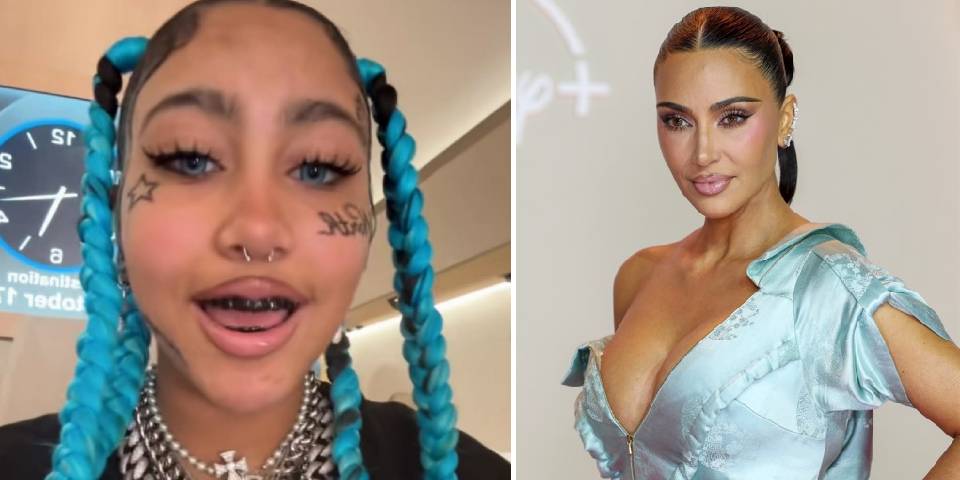 In mehreren Instagram-Videos hat die 12-jährige North West, Tochter von Kim Kardashian und Kanye West, für Aufsehen gesorgt. Zusammen mit ein paar Freundinnen zeigt sie sich in einem gewagten Look, der aus blauem Kunsthaar, Grillz (Zahnschmuck), blauen Kontaktlinsen, einem Nasenring und aufgeklebten Tattoos besteht. North posiert dabei in verschiedenen Szenarien – im Privatjet, im Auto oder sogar backstage bei einem Konzert. Auf ihrer Wange prangt ihr Name in Schreibschrift, unter einem Auge leuchtet ein Stern, und auch Kinn sowie Schläfe sind mit Verzierungen versehen.