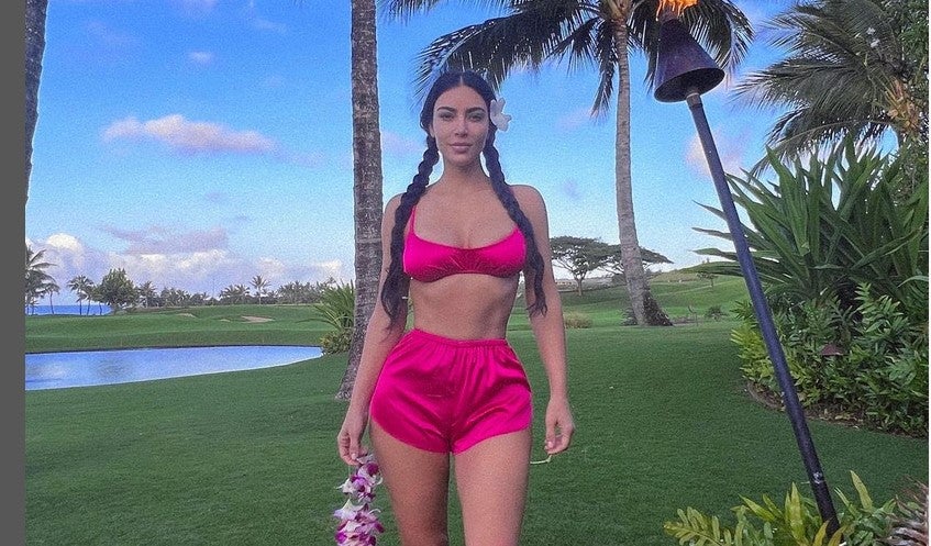 "Aloha" - auf ihrem neuesten Bild sieht Kim Kardashian aus wie eine neumodische Pocahontas. Zwei lange geflochtene Zöpfe, ein pinkes Bikini-Oberteil und seidige Hotpants, ebenso in Pink. Dazu ein paar Blumenaccessoires und fertig ist der Look. Blöd nur, dass man den Reality-Star auf dem Foto kaum erkennt. Das Gesicht sieht verändert aus, Kims berühmte Kurven sind stark reduziert. Um die Hüften herum bilden sich seltsame Wellen im Hintergrund. Das kann nur eines bedeuten: Kardashian hat erneut ihre Photoshop-Skills überschätzt.