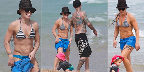 Pink scheint für ihre Bikini-Figur hart zu trainieren. Vielleicht sogar zu hart. Denn als sich die Sängerin in ihrem Familienurlaub mit Tochter Willow und ihrem Ehemann Carey Hart im Bikini zeigte, wirkte sie vor lauter Muskeln fast schon etwas unweiblich....