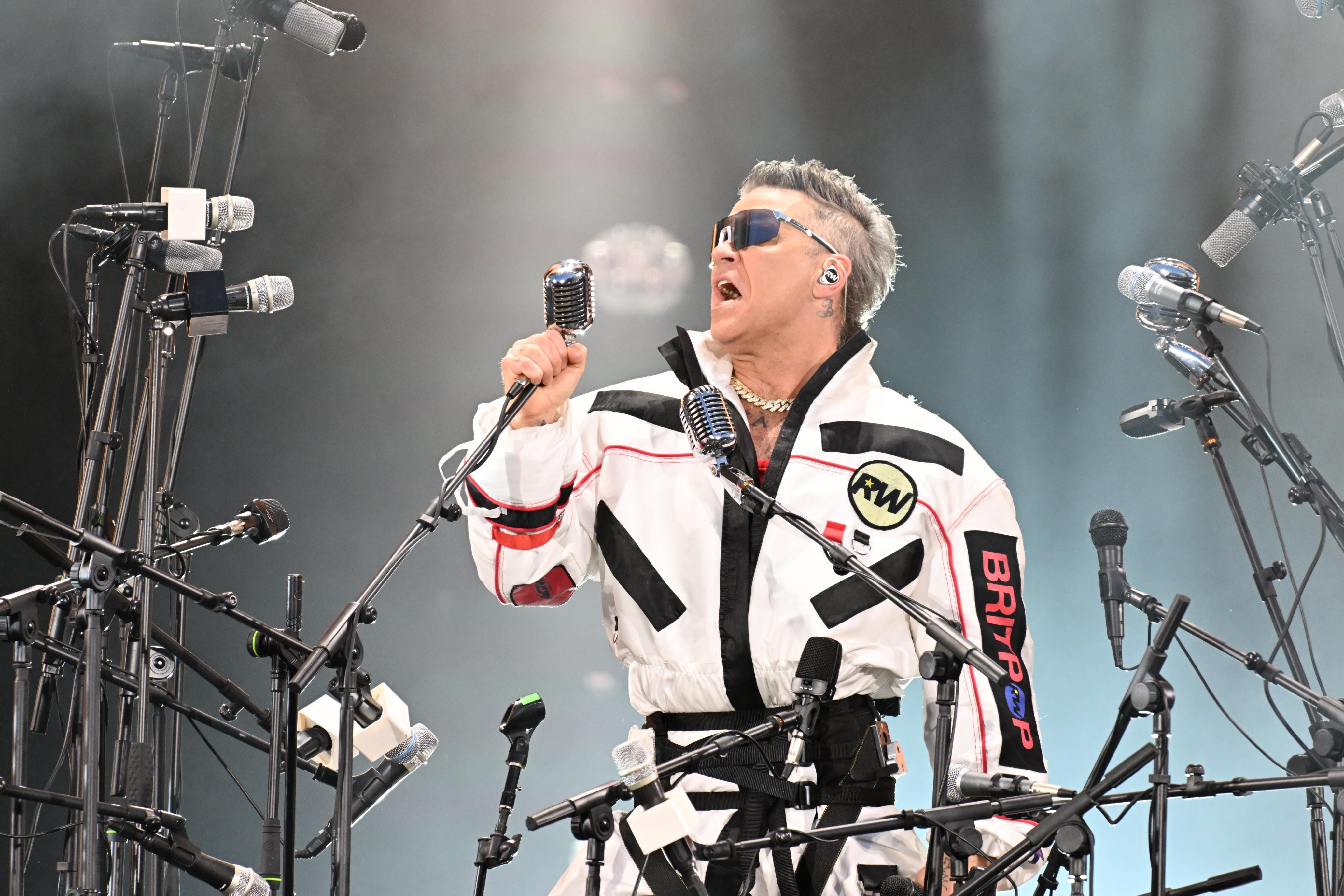 Robbie Williams ließ die Fans am Samstagabend in Wien rund 20 Minuten warten, doch um 20:40 Uhr ging es dann endlich los – und wie! Elvis Presley, Freddie Mercury, David Bowie und John Lennon loben beim Intro Robbie als "besten Entertainer der Welt" - natürlich in KI-Form, bevor der Kult-Star die Bühne betrat und gleich beim ersten Song "Rocket" einen Bungee-Jump hinlegte und gleich danach mit "Let Me Entertain You" die 50.000 Fans im Wiener Happel Stadion zu Begeisterungsstürmen hinriss.