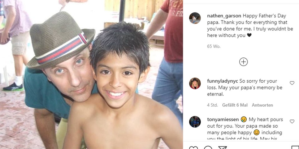 Nathen schreibt in seinem Posting: "Ich liebe dich so sehr, Papa. Ruhe in Frieden und ich bin so froh, dass du alle Abenteuer mit mir geteilt hast. (...) Ich bin froh, dass du deine Liebe mit mir geteilt hast. Ich werde sie nie vergessen oder verlieren."