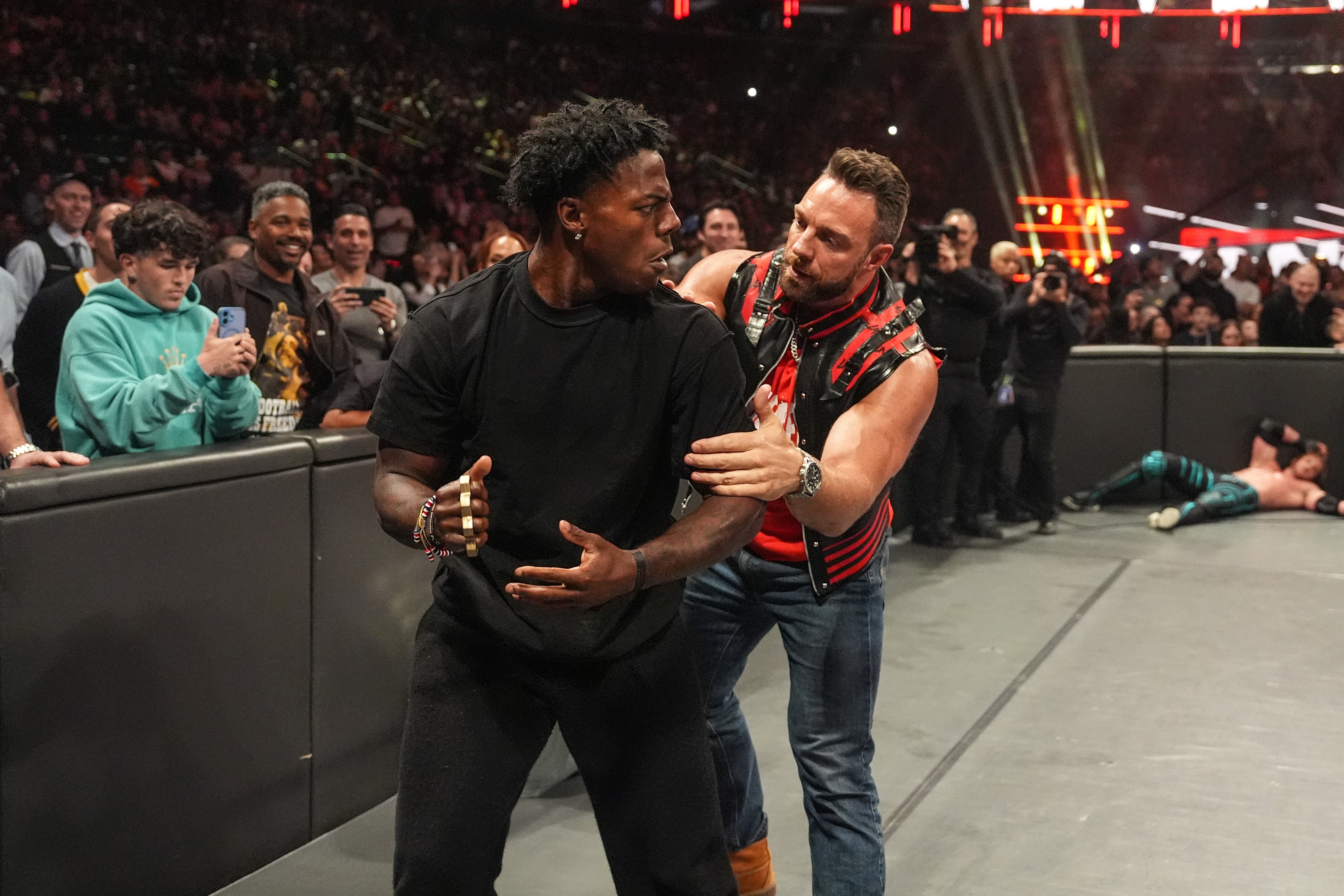LA Knight wollte Paul stoppen und hielt Paul fest. Auch IShowSpeed mischte mit - und schlug Knight "unabsichtlich" mit dem Schlagring nieder.