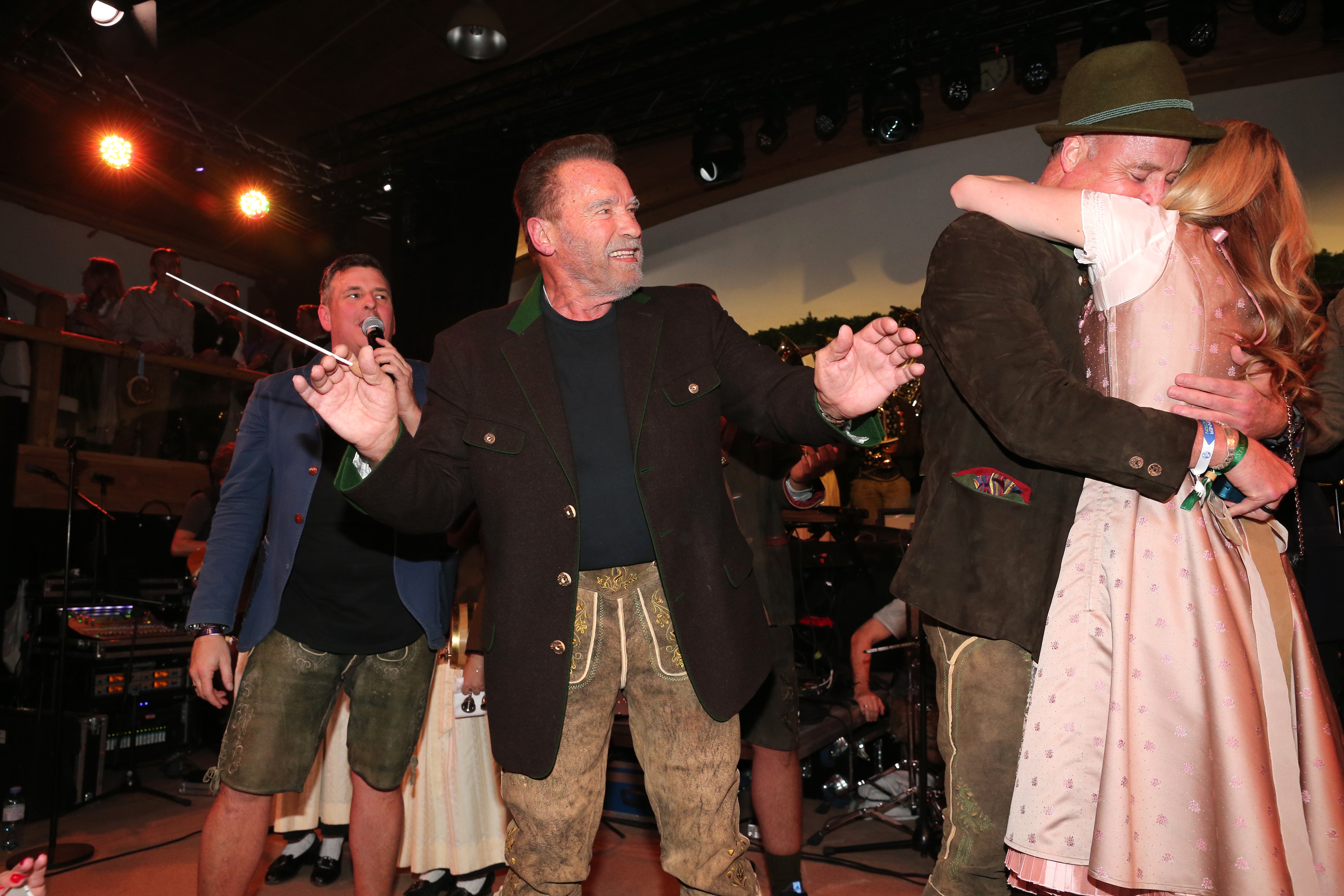 Arnold Schwarzenegger dirigierte bei der Weißwurstparty im legendären Stanglwirt nicht nur das Orchester, sondern auch eine Verlobung. Sein Freund, der US-Komiker Matt Iseman ging vor seiner Liebsten Britton All auf die Knie und sie sagte "Ja".