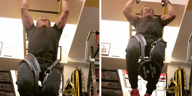 Der Mann ist eine Maschine: Sylvester Stallone (71) macht immer wieder Videos von seinem Workout. Das neueste teil hat es in sich. Die Action-Held-Legende macht Klimmzüge auf seine Weise – vielleicht nicht alters-adequat im Durchschnitt: Er trägt ein 45 Kilo Gewicht um seine Hüften und zieht sich hoch. Aber nicht auf Stangen, sondern mit den Händen an einem Seil.