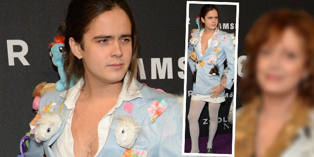 Seine berühmte Mama stellte der Exzentriker so nur knapp in den Schatten. Denn Hollywood-Schauspielerin Susan Sarandon hatte ebenfalls dick aufgetragen. Sie kam mit Totenkopf- und Blumen-Prints auf den Mantel, legte darüber eine wuchtige Goldplättchen-Kette.