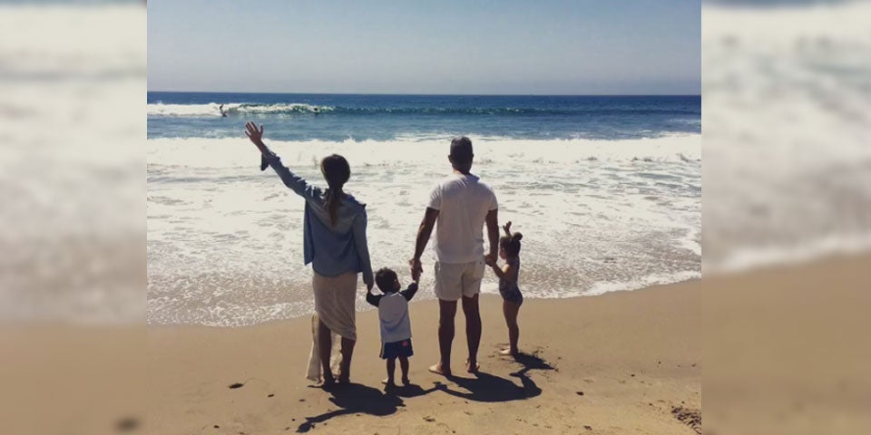 Das Foto stammt vom Instagram-Account von Robbie Williams Frau Ayda. Die kleine Familie verbringt ihren Urlaub derzeit am Strand von Malibu. Während Mama und Tochter Theodora (3) fröhlich einem Surfer zu winken, hält sich das Nesthäkchen der Familie, Charlton (1) fest an den Händen von Mama und Papa fest.