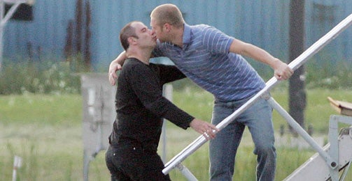 Da wird Ehefrau und Schauspielkollegin Kelly Preston (43, „Jerry Maguire“) aber alles andere denn begeistert sein. Ihr Göttergatte küsst fremd! Allerdings hat es ihm nicht eine scharfe Blondine angetan - John Travolta küsst einen Mann!