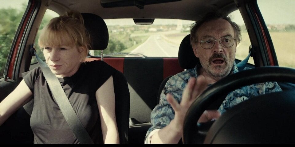 2017 ging Josef Hader in sein Regie-Debut "Wilde Maus" nach seiner Kündigung als Musikjournalist auf Rachefeldzug. Jetzt hat er in "Andrea lässt sich scheiden" als Religionslehrer Franz Leitner und trockener Alkoholiker mit ganz andere Problemen zu kämpfen: In der Nacht hat er im trostlosen Weinviertel nahe dem Zwiebel-Kreisverkehr in Unterstinkenbrunn – ja den gibt es wirklich - einen Mann überfahren der auf der Straße lag. Klar, dass ihm das wieder aus der Bahn wirft und zurück zum Alkohol, sowie in bedauernswerte Single-Discos treibt.