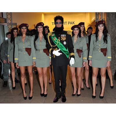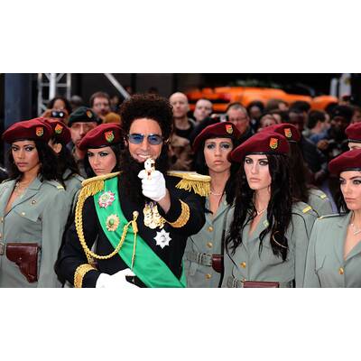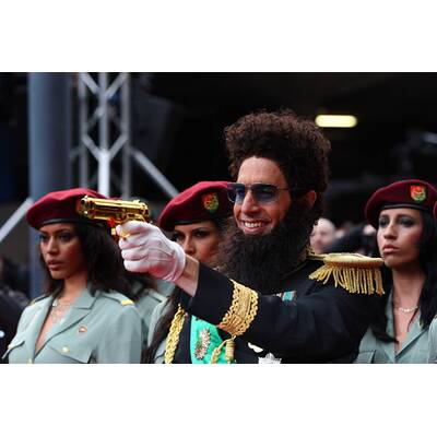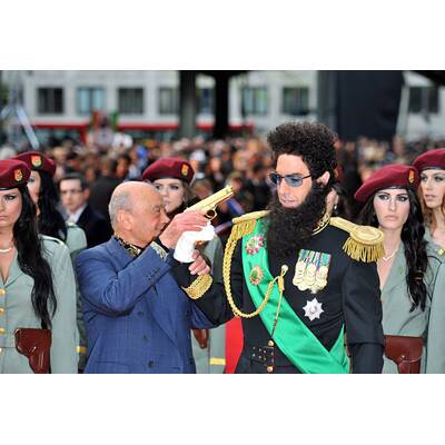 Als durchgeknallter Diktator Aladeen hatte der Brite bereits im Vorfeld für Aufruhr gesorgt. Bei der Oscar-Verleihung etwa störte er mit einer Urne in den Händen den Star-Auflauf, um die "Asche von Kim Jong-Il" über die Schauspielerin Halle Berry zu verstreuen - am Ende kippte er sie über das Haupt des Moderators Ryan Seacrest.