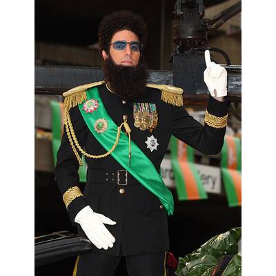 In seiner jüngsten Komödie mimt Cohen den General-Admiral Aladeen. Mit Vollbart und operettenhafter Uniform nimmt er Diktatoren aufs Korn - und überschreitet dabei gewohnt souverän Geschmacksgrenzen. Deutschlandstart des Kinofilms ist am 17. Mai.