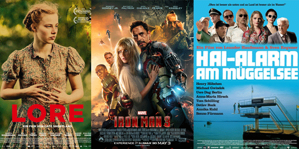 Langsam aber stetig setzt sich in Österreich doch der Sommer durch. Wer aber nicht immer beim gleichen Programm den Abend im Heurigen-Garten verbringen möchte, könnte auch mal einen Abstecher ins Kino seines Vertrauens machen. Auch diese Woche werden die Fans des Kinos wieder mit einigen tollen Leinwand-Produktionen verwöhnt. Allen voran lockt natürlich der dritte Iron Man die Massen in die Kinosäle - Robert Downey Jr. und Gwyneth Paltrow sorgen darin für Recht und Ordnung. Mit Hai-Alarm am Müggelsee geht auch eine Komödie an den Start, die garantiert für beste Unterhaltung sorgen wird. Wer den ernsteren Stoff bevorzugt, wird sich wahrscheinlich eher für die deutsch-australische Produktion Lore entscheiden. Wie immer ist für jeden Geschmack etwas dabei. Hier nun die Filmstarts der Woche im Überblick.