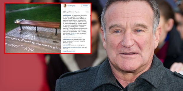 Auf ihrem Instagram-Account postete die schöne Schauspielerin ein Foto einer leeren Parkbank in Boston. Es ist genau jene Bank die in Williams‘ Film „Good Will Hunting“ zu sehen ist. Auf ihr liegen Blumen, unter ihr sind zwei Fußabdrücke und Zitate aus Filmen des Schauspielers gezeichnet. Das Posting ergänzt die Schauspielerin mit ihren ganz eigenen rührenden Worten: