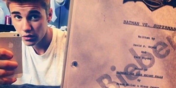 Bieber postet auf Instagramm ein Drehbuch von "Batman vs. Superman" auf dem ein Bieber-Stempel zu sehen ist. Sein Kommentar dazu: "#robin??"