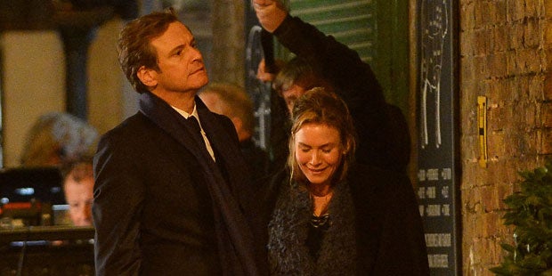 Neues vom "Bridget Jones Baby"-Set: Dort weihnachtet es schon. Nach einem harmonischen Fest sehen diese Szenen nicht aus. Die schwangere Bridget (Renee Zellweger) zieht ganz alleine einen Christbaum nach Hause. Vor ihrer Tür trifft sie auf Mark Darcy (Colin Firth). Es scheint Streit zu geben.