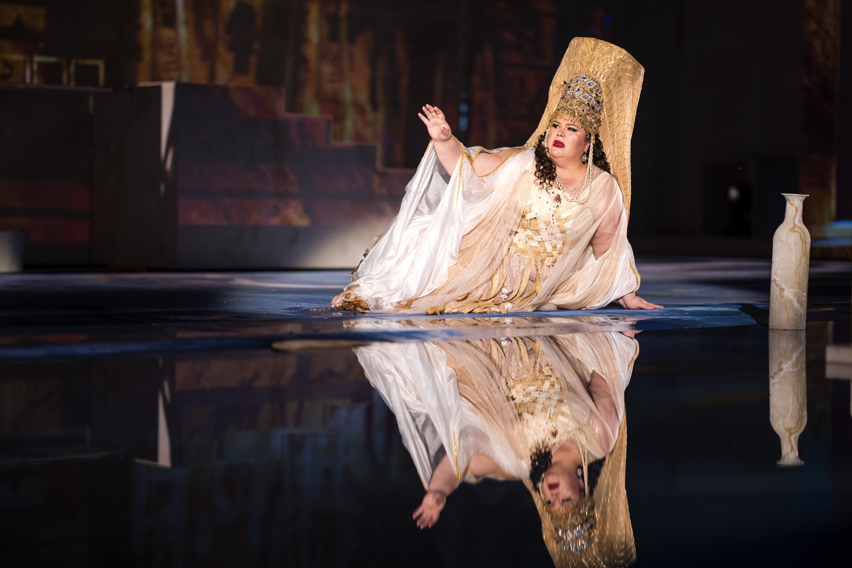 Gesanglich hat diese "Aida" durchaus auch manches zu bieten. Leah Crocetto in der Titelpartie ist ein stimmkräftiger Sopran und trifft auch die höchsten Töne. Zwischen ihr und ihrem geliebten Radames, mit großem Stimmumfang und klarer Phrasierung gesungen von Jorge Puerta, mag aber nicht so recht der Funke überspringen. Mehr Feuer versprüht da schon Raehann Bryce-Davis als Aidas Herrin und Konkurrentin Amneris, die darstellerisch virtuos zwischen Liebe und Rache, stimmlich zwischen Wärme und Furor changiert, auch wenn ihr Mezzo-Sopran in den Tiefen manchmal etwas rau klingt.