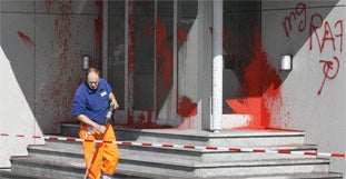 Der RAF-Film sorgt für Unmut. Jetzt ist der Schweizer Filmverleiher Pathe Films Opfer eines Farbanschlags geworden.