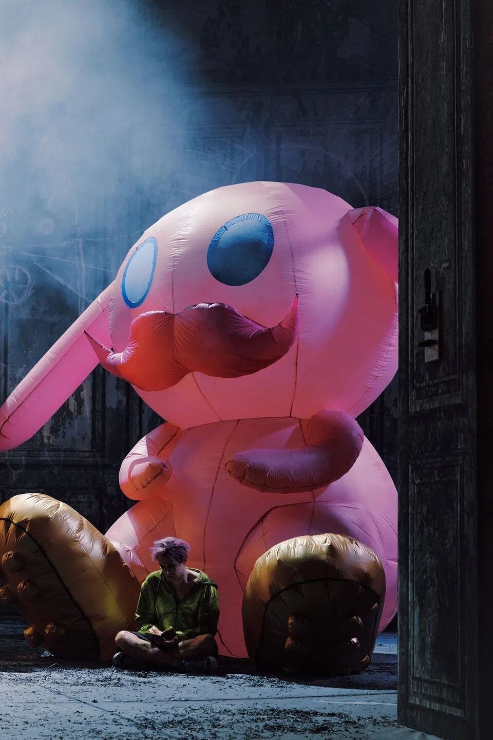 Aber der Schlaf der Vernunft gebiert Ungeheuer, und so finden sich aufblasbare, rosafarbene Riesenkarnickel mit Schanischnauzer, Darsteller mit Hundeköpfen und Marge-Simpson-artigen Perücken im hybriden Geschehen, das zwischen Hommage und Demontage schwankt. Mal surreal, mal absurd. Eigenartig eben, sehr eigenartig.
