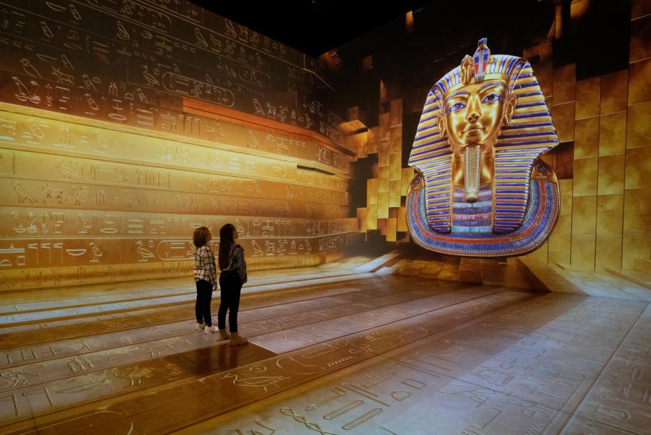 Grabkammern. Auf über 2.000 Quadratmeter erwartet die Besucher ein Augmented-Reality-Erlebnis zwischen gottgleichen Herrschern, Weltwundern der Architektur und Grabkammern voller Gold. Die Schätze werden in Originalgröße abgebildet.