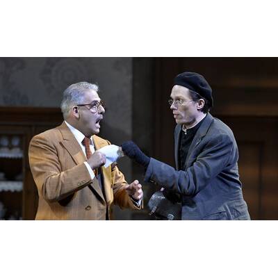 Eine Überraschung an diesem Abend stellt Pietro Spagnoli dar. Der 51-jährige italienische Routinier ließ seinen Antipoden Bartolo über den eindimensionalen Charakter des spießigen Alten hinaus zu einer echten, vielschichtigen Figur wachsen - und bekommt am Ende zumindest einen Dackel anstelle der begehrten Rosina. Einzig Toni Lehtipuu überzeugt zwar mit gewitztem Spiel als junger Graf Almaviva, kann stimmlich seine Rolle jedoch nicht ausfüllen. Sein Tenor ist schlicht zu schwerfällig für die nötigen Koloraturen.