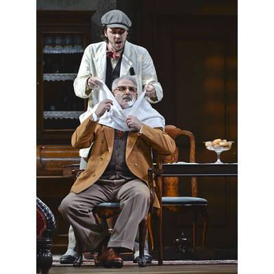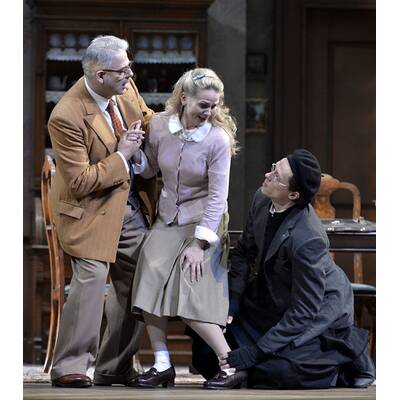 Verantwortlich dafür ist eine rundum gelungene Ensembleleistung - auf, vor und hinter der Bühne. Das Vorgeschehen zur "Hochzeit des Figaro", bei dem der junge Graf Almaviva mithilfe seines Dieners, des Barbiers Figaro, dem alten Doktor Bartolo dessen Mündel Rosina abspenstig macht, wird vom Regieduo Moshe Leiser und Patrice Caurier im Jahr 1940 angesiedelt. Anfangs gestalten sie das Geschehen zwischen Bartolos Haus und der Straße davor gleichsam als Splitscreen, der parallel bespielt wird. Dann wird die spießige Kammer aus dem Hintergrund an die Rampe herangeschoben, um daraufhin drei von vier Akten mit ihrem detailfreudigem Naturalismus zu dominieren.